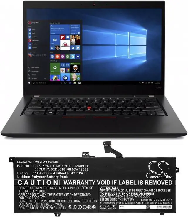 Battery for Lenovo ThinkPad X390 ThinkPad X390 20Q00039CD ThinkPad X390 Compatible with the following devices ThinkPad X390, ThinkPad X390 20Q00039CD, ThinkPad X390 20Q0A000CD, ThinkPad X390 20Q0A001CD, ThinkPad X390 20Q0A002CD, ThinkPad X390 20Q0A00BCD, ThinkPad X390 20Q0A00CCD, ThinkPad X390 20Q0A00DCD, ThinkPad X390 20Q0A00ECD, ThinkPad X390 20Q0A00FCD, ThinkPad X390 20Q0A00GCD, ThinkPad X390 20Q0A00HCD, ThinkPad X390 20Q0A026CD, ThinkPad X390 20Q0A027CD, ThinkPad X390 20SC001ECD, ThinkPad X390-20Q1S02M00 Compatible with Battery Part Numbers 02DL017, 02DL019, 5B10W13923, L18C6PD1, L18L6PD1, L18M6PD1, SB10K97655, SB10K97657, SB10T83166, SB10T83168