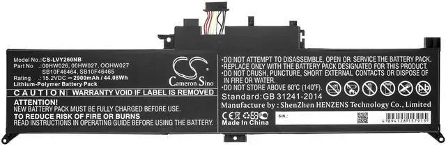 Battery for Lenovo ThinkPad Yoga 260 ThinkPad Yoga 260 20FD001XGE ThinkPad Yoga Compatible with the following devices ThinkPad Yoga 260, ThinkPad Yoga 260 20FD001XGE, ThinkPad Yoga 260(20FD-000SAU), ThinkPad Yoga 260(20FD-000XAU), ThinkPad Yoga 260(20FD-0010AU), ThinkPad Yoga 260(20FD-0014AU), ThinkPad Yoga 260(20FD-0016AU), ThinkPad Yoga 260(20FD-CTO1WW), ThinkPad Yoga 260(20FE-0003AU), ThinkPad Yoga 260(20FE-000VAU), ThinkPad Yoga 260(20FE-000YAU), ThinkPad Yoga 260(20FE-0010AU), ThinkPad Yoga 260(20FE-0011AU), ThinkPad Yoga 260(20FE-002AAU), ThinkPad Yoga 260(20FE-002BAU), ThinkPad Yoga 260(20FE-002DAU), ThinkPad Yoga 260(20FE-0032AU), ThinkPad Yoga 260(20FE-0036AU), ThinkPad Yoga 260(20FE-0037AU), ThinkPad Yoga 260(20FE-A005AU), ThinkPad Yoga 260(20FE-A006AU), ThinkPad Yoga 260(20FE-A008AU), ThinkPad Yoga 260(20FE-A01YAU), ThinkPad Yoga 260(20FE-A02EAU), ThinkPad Yoga 260(20FE-S00100), ThinkPad Yoga 260(20FE-S00200), ThinkPad Yoga 260(20FE-S00A00), ThinkPad Yoga 260(20FE-S00C00), ThinkPad Yoga 260(20FE-S05401), ThinkPad Yoga 260(20FE-S08C00), ThinkPad Yoga 260(20FE-S08N01), ThinkPad Yoga 260(20FE-S08P01), ThinkPad Yoga 260(20FE-S0DG00), ThinkPad Yoga 260(20FE-S0DH00) Compatible with Battery Part Numbers 00HW026, 00HW027, OOHW027, SB10F46464, SB10F46465