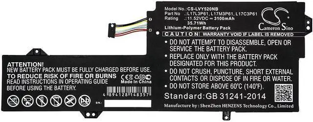 Battery for Lenovo 7000-13 CHAO7000-13 IdeaPad 320S-13IKB IdeaPad 320S-13IKB Compatible with the following devices 7000-13, CHAO7000-13, IdeaPad 320S-13IKB, IdeaPad 320S-13IKB (81AK), IdeaPad 320S-13IKB (81AK0036GE, IdeaPad 320S-13IKB (81AK0037GE, IdeaPad 320S-13IKB (81AK0038GE, IdeaPad 320S-13IKB (81AK0039GE, IdeaPad 320S-13IKB (81AK003AGE, IdeaPad 320S-13IKB (81AK0090GE, IdeaPad 320S-13IKB (81AK), IdeaPad 320S-13IKB (81AK0036GE), IdeaPad 320S-13IKB (81AK0037GE), IdeaPad 320S-13IKB (81AK0038GE), IdeaPad 320S-13IKB (81AK0039GE), IdeaPad 320S-13IKB (81AK003AGE), IdeaPad 320S-13IKB (81AK0090GE), IdeaPad 320S-13IKBR, V530s, V530s-14 i7 8550U/8GB/256GB, V530s-14(i5-8250U/12G/256GB), V530s-14(i5-8250U/16G/512GB), V530s-14(i5-8250U/8G/256GB), V530s-14(i5-8250U/8G/512GB), xiaoxin 7000-13, Yoga 330-11IGM, Yoga 520 12, Yoga 520-12, YOGA 720-12, Yoga 720-12IKB, Yoga 720-12IKB-81B5003WSP Compatible with Battery Part Numbers L17C3P61, L17L3P61, L17M3P61