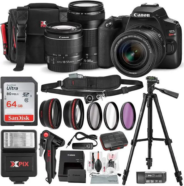 Whether you? re a first time SLR user, an aspiring photo enthusiast, or someone looking to capture those amazing family moments, The Canon EOS Rebel SL3 can be the perfect companion. It? s the smallest and lightest EOS DSLR camera to date*, and is equipped with 4K recording capability, Canon? s dual Pixel CMOS AF, and a Vary-Angle LCD for selfies and fun angles. With a 24. 1 Megapixel CMOS (APS-C) sensor, DIGIC 8 image processor to help produce high image quality, and fun options like 4K time-lapse movies, and creative assist, the EOS Rebel SL3 makes it simple to get great photos and videos to view and share.