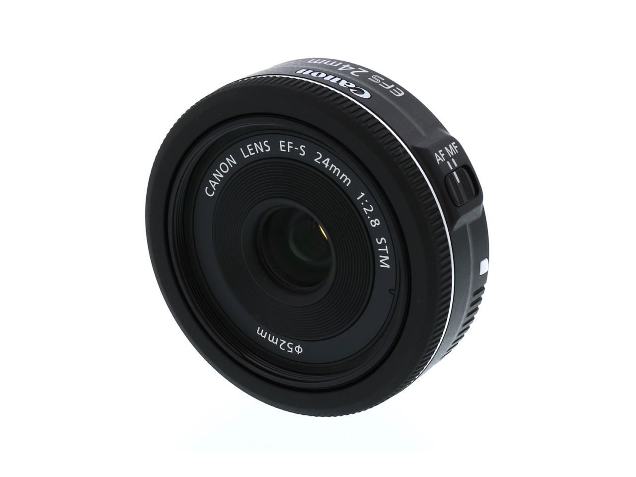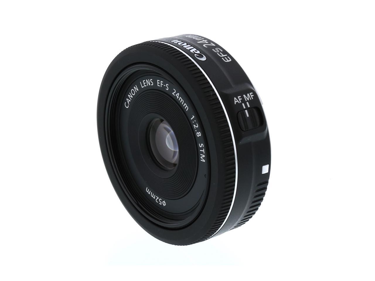 Incredibly lightweight, the EF-S 24mm f/2.8 STM is a fast and versatile lens with advanced AF and superior optics. With a 35mm equivalent focal length of 38mm, it's appropriate for a variety of purposes. The lens features optimized lens element placement and includes an aspheric element for high image quality from the center of the composition to the corners, and has specialized coatings on the lens elements to reduce ghosting and flare. To ensure excellent color balance, a 7-blade circular aperture provides superb out-of-focus detail. The EF-S 24mm f/2.8 STM excels during movie shooting thanks to its STM motor that enables silent and smooth focus tracking (on EOS cameras with Movie Servo AF), plus a micro-stepping drive that keeps aperture changes quiet. The lens also offers full-time manual focus, manual AF adjustment (one-shot AF), and can focus down to a minimum distance of 0.5 ft. (0.16m). Delivering optical brilliance in a lightweight and unobtrusive construction, the EF-S 24mm f/2.8 STM is a great fixed-optical length lens for photographers looking to add a travel-friendly option to their collection.