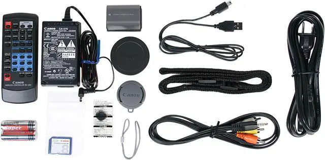 | Package Contents | WL-D83 Wireless Controller, Two AA batteries, SS-200 Shoulder Strap, Lens cap and lens cap cord, Terminal Cover (Attached to camera. Cut off before using the camera.), BP-608 Battery Pack, CA-570 Compact Power Adapter, DC-600 DC Coupler, S-150 S-video Cable STV-250 Stereo Video Cable, Canon SD Memory Card SDC-8M, cables |