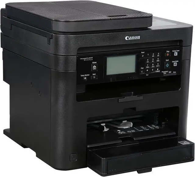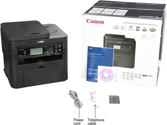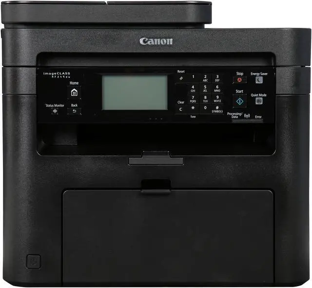 Canon imageCLASS MF MF249dw Laser Multifunction Printer - Monochrome - Copier/Fax/Printer/Scanner - 28 ppm Mono Print - 600 x 600 dpi Print - Automatic Duplex Print - 600 dpi Optical Scan - 251 sheets Input - Fast Ethernet - Wireless LAN The all-in-one, monochrome duplex printer delivers high-quality laser output, feature-rich capabilities and reliability that is ideal for any small office or home office environment. It generates 28 black/white pages per minute with 600 x 600 dpi in copying and printing. The first print is out in 6 seconds. The first copy is out in 9 seconds. It produces up to 999 copies of an original in one copy job. Maximum print size is 8-1/2"" x 14"". Print modes include Watermark, Page Composer and Toner Saver. Built-in AirPrint compatibility allows you to print right from your mobile device. Connectivity also includes Ethernet and Hi-Speed USB. Super G3 modem (up to 33.6Kbps) with duplex faxing transmits a page in approximately 3 seconds with up to 200 x 400 dpi. The imageClass MF249dw laser printer also features a 512MB memory, four one-touch speed dials, up to 100 coded dials, SMB fax forwarding, 24-bit scanning, 250-sheet input tray and 50-sheet duplex auto document feeder.