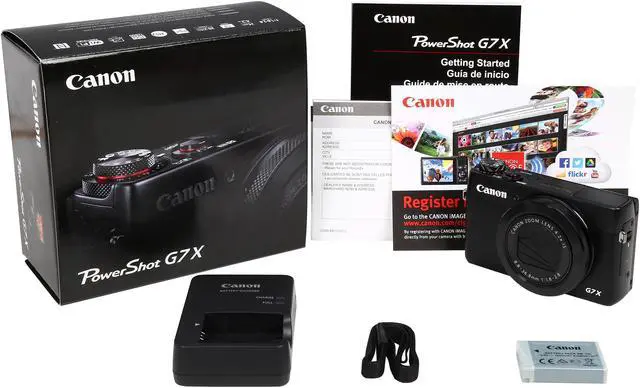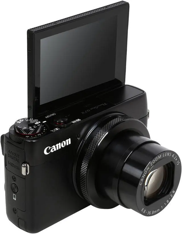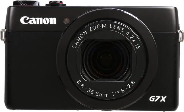 The PowerShot G7 X is a premium high-performance camera that puts exciting and impressive capabilities in a sophisticated, compact package. It starts with the sensor: a large and light-grabbing 1.0-inch, 20.2-Megapixel* High-Sensitivity CMOS sensor powered by Canon's latest generation DIGIC 6 Image Processor for beautifully rendered low-light photography up to ISO 12800. The IS lens is a f/1.8 (W) - f/2.8 (T) that puts more in your frame while staying bright to the maximum 4.2X Optical Zoom (24mm - 100mm), with a nine-blade circular aperture diaphragm for artistic background blur, and a minimum focus range of just 5cm for precise macro shooting. Wi-Fi®**- and NFC-enabled***, the PowerShot G7 X is selfie-ready with a high-resolution multi-angle capacitive 3.0-inch touch panel LCD. Shooting is a joy with High-Speed AF (0.14 sec.), 31 AF points, full-resolution continuous shooting up to 6.5fps and 1080p/60p HD video. Designed to provide stellar images, the PowerShot G7 X is a compact digital camera powered to inspire your most impressive photography. And it delivers.