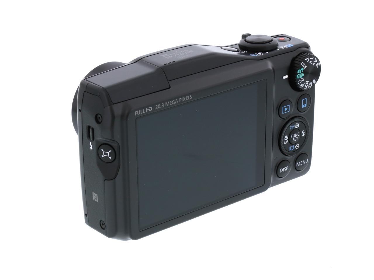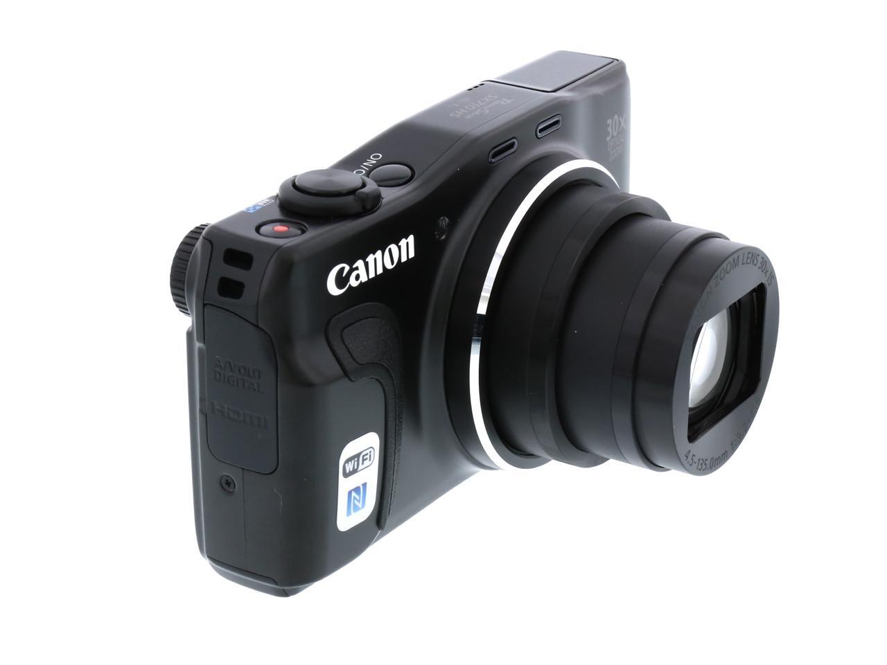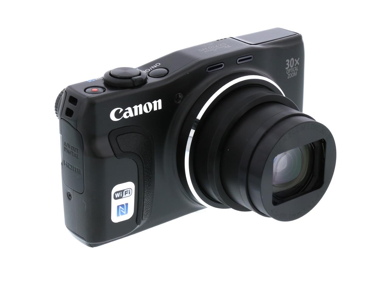 | Features | 30x Optical Zoom (25-750mm) helps facilitate versatility while maintaining outstanding optical performance, along with Intelligent IS to help optimize image stabilization for virtually shake-free images in a wide variety of conditions. Built-in Wi-Fi allows wireless transferring of images and video to compatible mobile devices, select social networking sites and your Wi-Fi enabled computer, and lets you remotely shoot using your compatible smartphone or tablet, while built-in NFC (Near Field Communication) allows quick and simple pairing to a compatible Android device. Compatibility with the Canon Connect Station CS100 device enables you to wirelessly transfer images for storage via NFC and Wi-Fi connectivity. 20.3 Megapixel High-Sensitivity CMOS sensor combined with the DIGIC 6 Image Processor creates the Canon HS SYSTEM, which helps provide excellent low-light performance. Capture stunning 1080p Full HD video (60p/30p/24p options) with a dedicated movie button. Large 3.0-inch LCD with a screen resolution of 922,000 dots allows easy viewing even from a wide angle. With Zoom Framing Assist, your camera will automatically zoom in or out while following the movement of your subject and help it to remain in focus. Creative Shot mode uses composition, color and lighting from your original image to create unique images with an artistic flair. Story Highlights automatically selects and compiles images into an exciting highlight reel that can be accompanied by included music options within the camera without the use of software. Hybrid Auto records quick video clips before each still and compiles them together to make a short highlight reel, while Smart AUTO intelligently selects the proper settings for the camera based on predefined shooting situations to help you create the best possible image. |