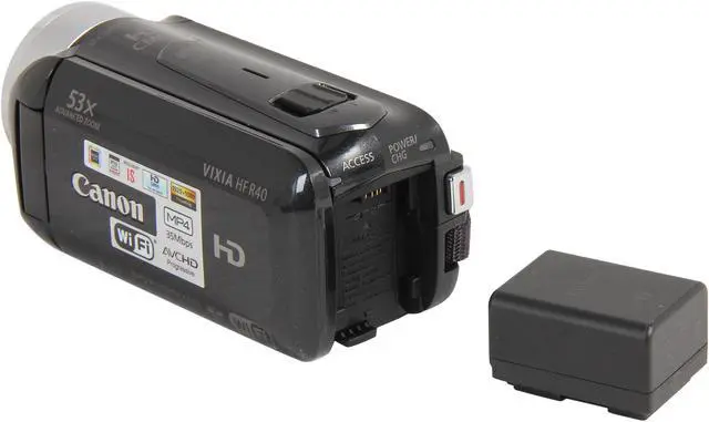 With the compact, easy-to-use Canon VIXIA HF R40 Camcorder, you'll see and capture the world in a whole new way through a Genuine Canon HD Video Lens with 53X Advanced Zoom. SuperRange Optical Image Stabilization keeps your video smooth and steady throughout the entire zoom length, while improved Dynamic IS helps keep your video sharp and blur-free when you shoot while walking. The Canon 3.28-Megapixel Full HD CMOS Image Sensor combines with the all new, ultra-advanced DIGIC DV 4 Image Processor to let in more light, allowing you to shoot bright and clear video even in dark scenes. Dual Recording allows you to record in AVCHD to the flash drive and MP4 to the SD card simultaneously, creating archival and easy-to-send video at the same time. Record in 1080/60p easy-to-share MP4 format (35Mbps) and AVCHD Progressive (28Mbps) for incredibly smooth and rich video of even the fastest-moving subjects. Built-in Wi-Fi® that lets you share anytime, anywhere, has been upgraded with Live Streaming, allowing you to view what you're recording remotely on a mobile device using the Canon CameraAccess app* – great for monitoring babies, shooting wildlife and much more. The significantly brighter, new 3.0-inch capacitive Touch Panel LCD gives you intuitive control with a light touch. New Baby Mode has everything parents need to shoot, organize and share chronological video of their baby's development, with a dedicated Baby Album, age, height and weight stamps and more.