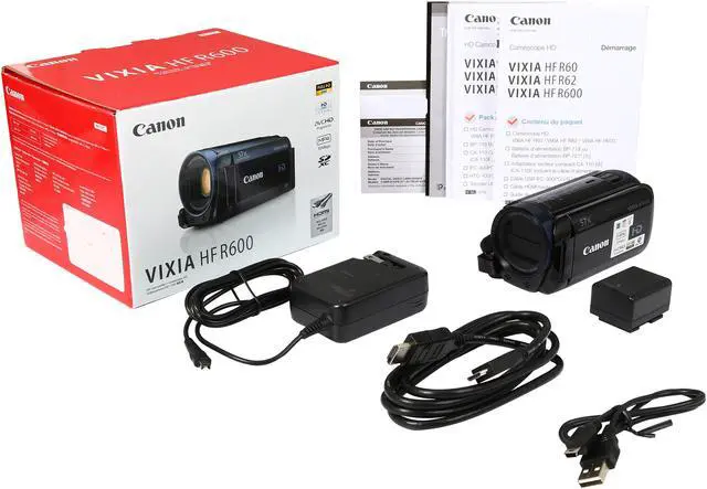 | Package Contents | VIXIA HF R600 Camcorder Battery Pack BP-718 Compact Power Adapter CA-110 USB Interface Cable IFC-300PCU/S Mini-HDMI Cable HTC-100 |