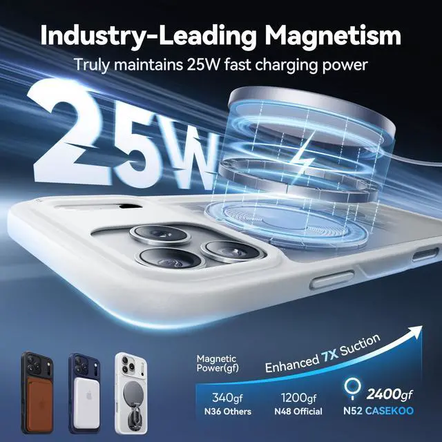 CASEKOO Ultra-Magnetic Stand for iPhone 17 Pro Max Case [Military Drop Protection] [Compatible with MagSafe] Shockproof Translucent Matte Slim Ring Holder Case for iPhone 17 ProMax 6.9", White CASEKOO compatible with Apple for iPhone 17 Pro Max Case promax Ring Magnetic Kickstand Stand for Mag Safe Protective Heavy Duty Protection Military Grade Metal Rugged Original Designer Bumper Silicone Matte Cases Grip Anti-Slip Slim Fit Thin Phone Cover Women Men 6.9 Lightweight Anti-Fingerprint Rubber magicStand MagPrime NubuckTexture Frame Camping & Hiking Lacrosse Products Pet Grooming Coffee Lovers Office Baking Tools