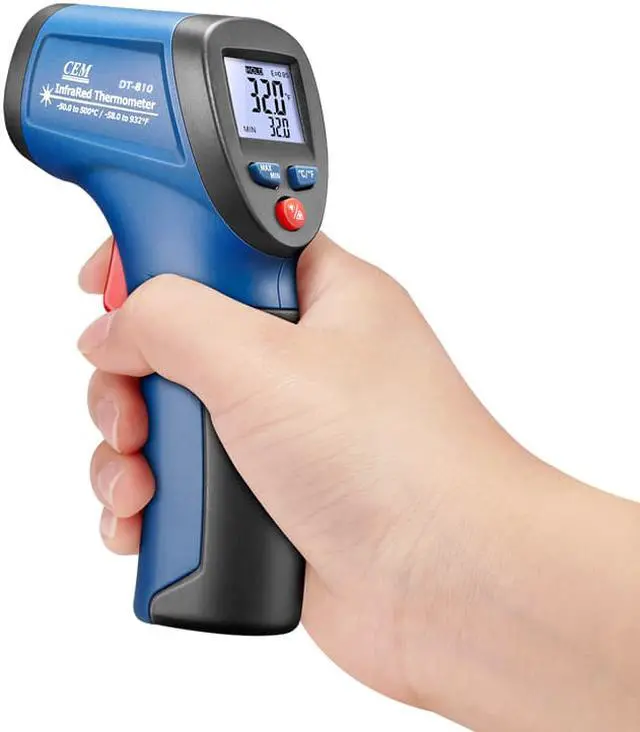 810/810B/811/812 Series Low cost mini IR Thermometers provides non-contact temperature measurements: Food preparation, Safety and Fire inspectors, Plastic molding, Asphalt, Marine and Screen Printing, Measure ink and dryer temperature, Diesel and Fleet maintenance. Targeting objects become easy with the bright laser beam. Even in the dark, the display is easy to read with the quality backlit