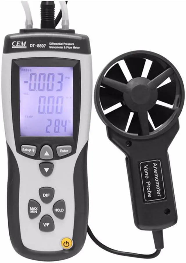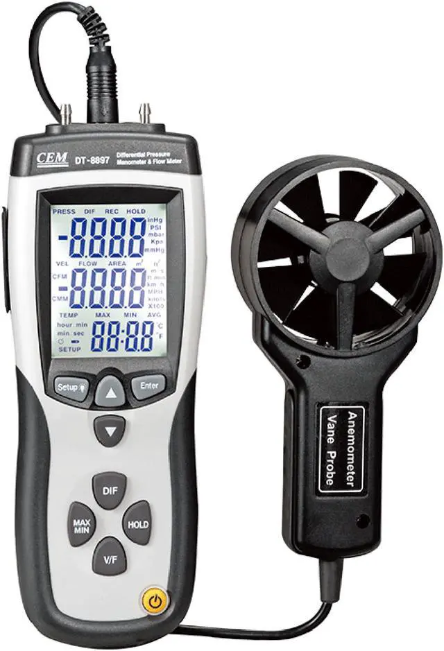 CEM DT-8897 Differential Pressure Manometer and Flow Meter Large LCD Display