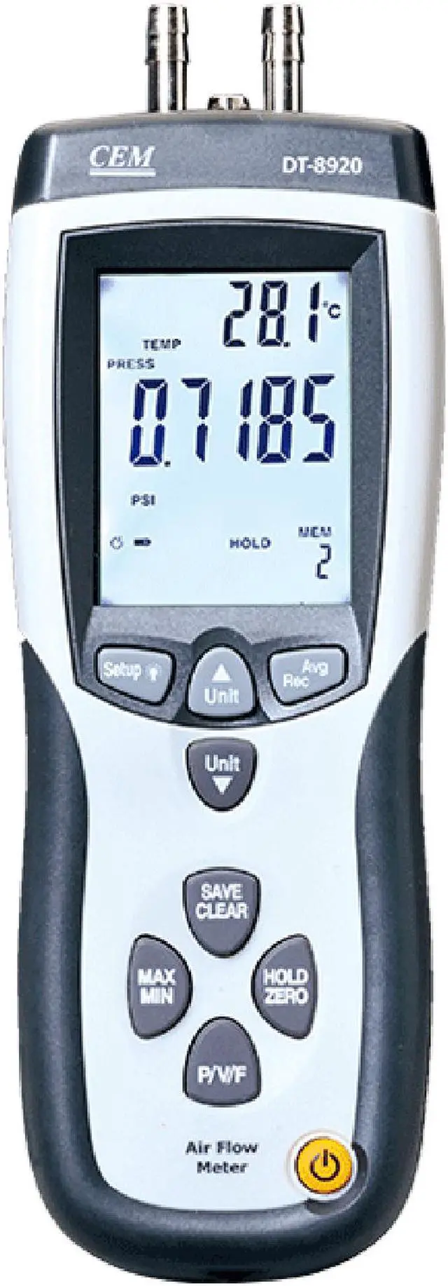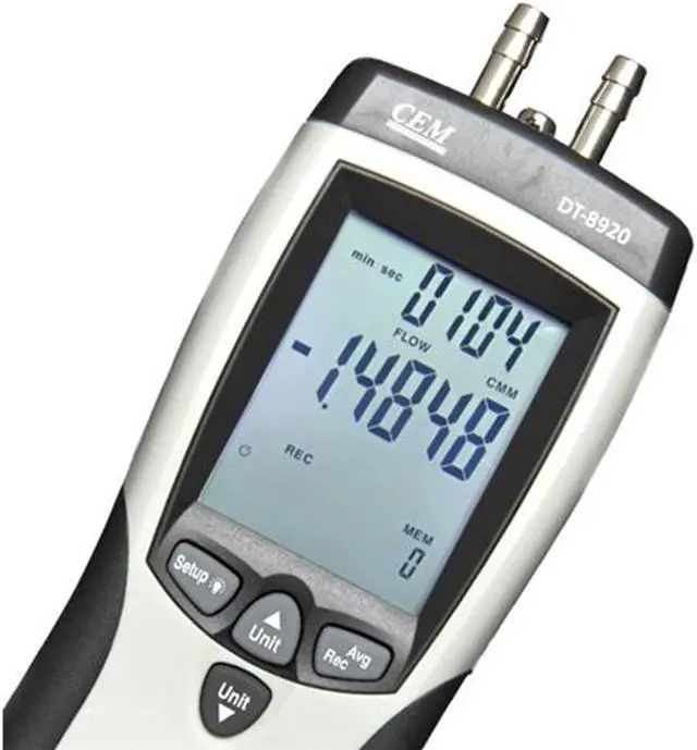 CEM DT-8920 Pressure and Flow Meters with Large Backlit LCD Display