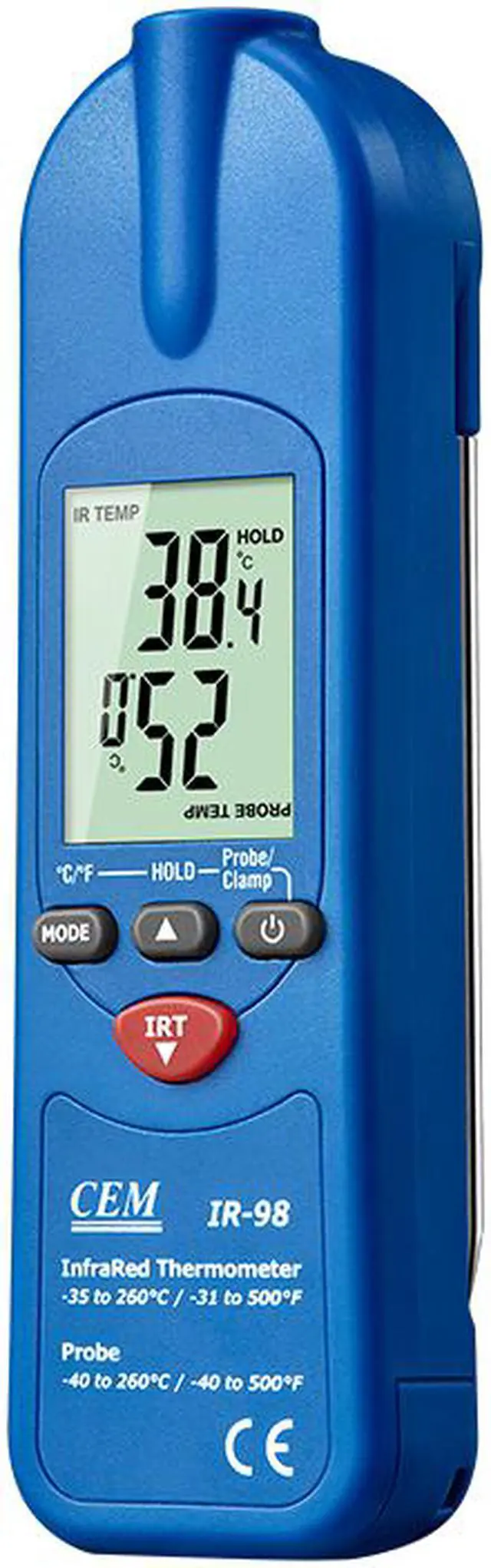 CEM IR-98 3 in 1 IR Thermometer with Thermistor Probe and Clamp