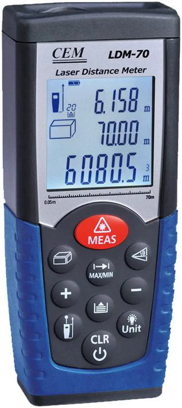 LDM-70 laser rangefinder is a handheld laser rangefinder independently designed, developed and manufactured by CEM. It is simple and safe to use, easy to operate, and can be used indoors and outdoors. Addition, subtraction, Pythagorean theorem, area and volume calculation Shortcut keys make the measurement fast and reliable, and at least 20 sets of data can be stored.