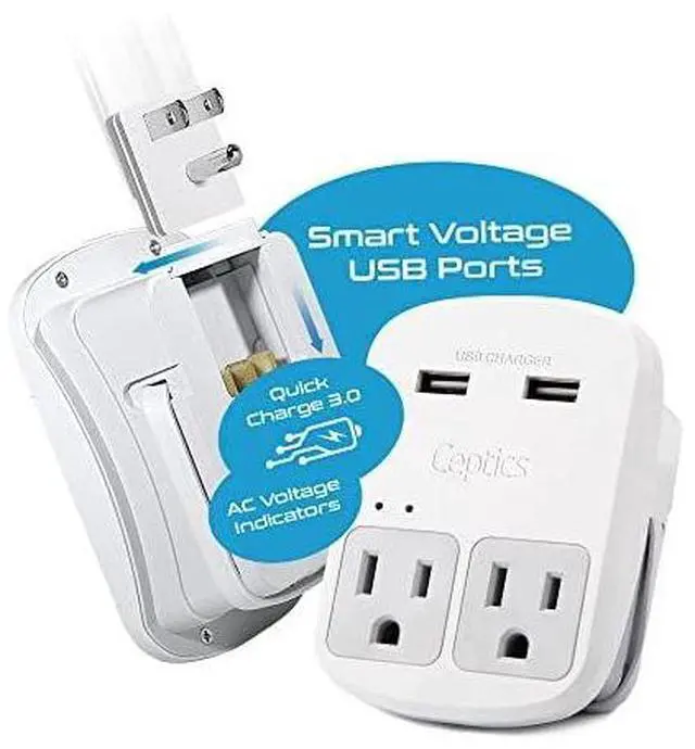 - Smart-Voltage USB ports. Fully grounded and Safe with Surge Protection