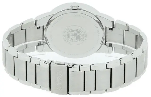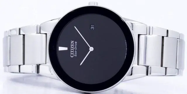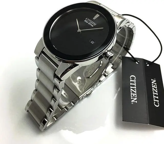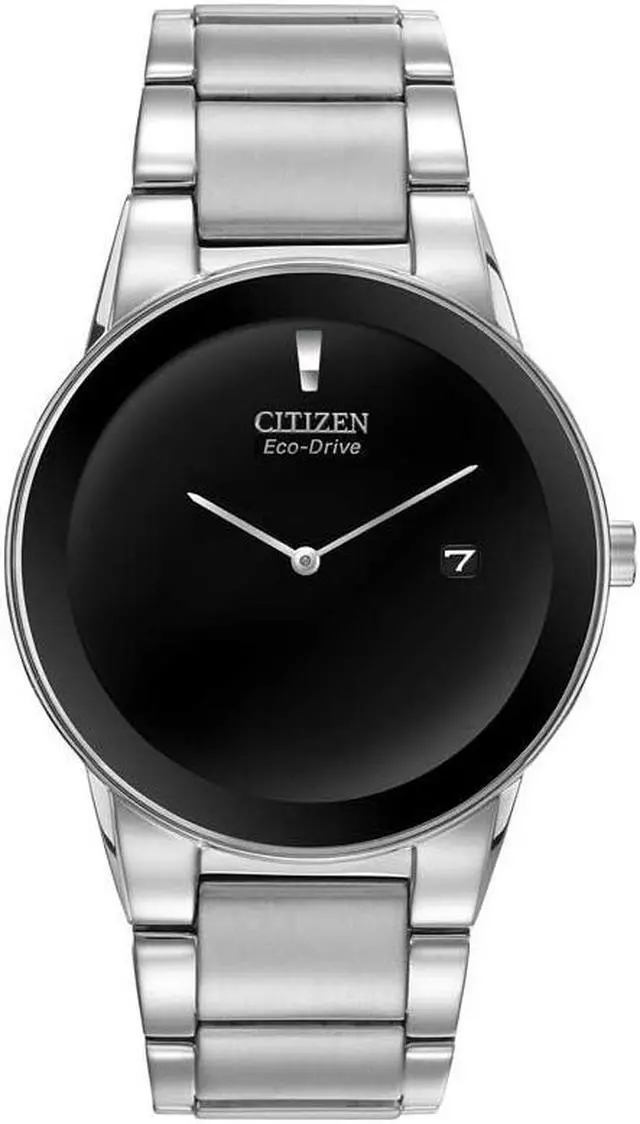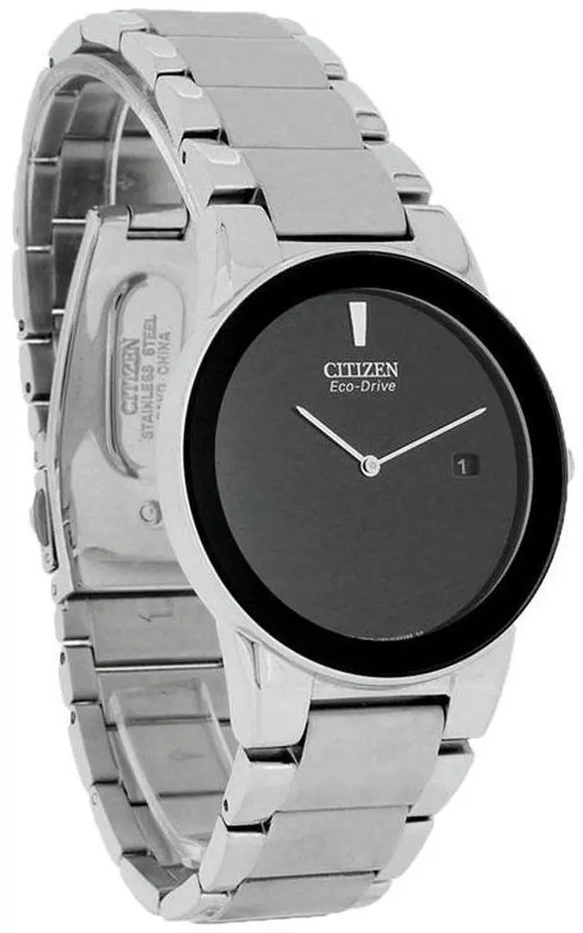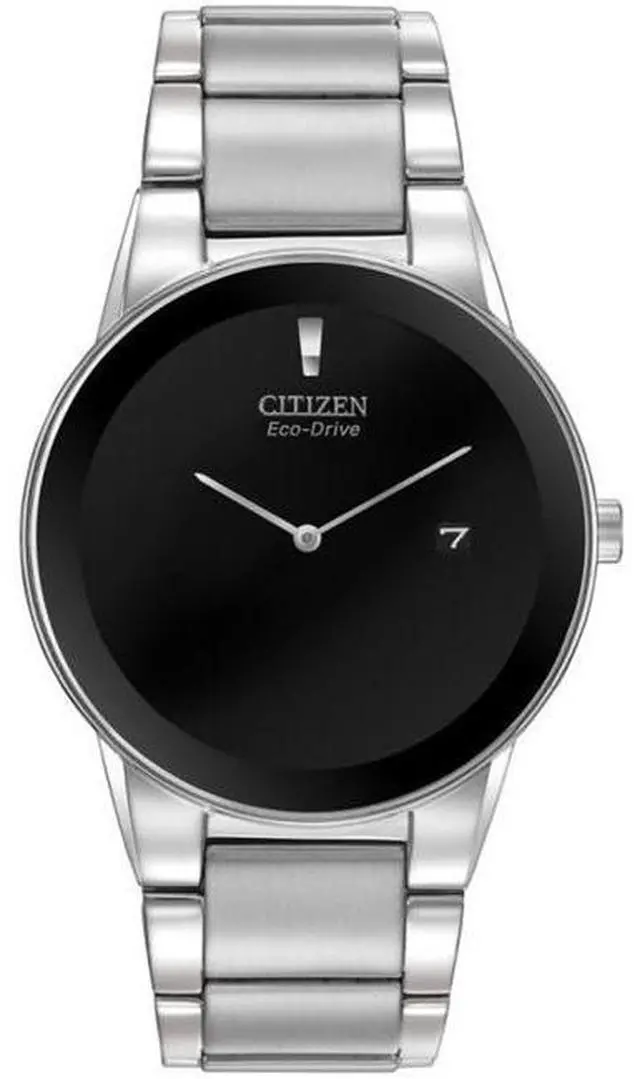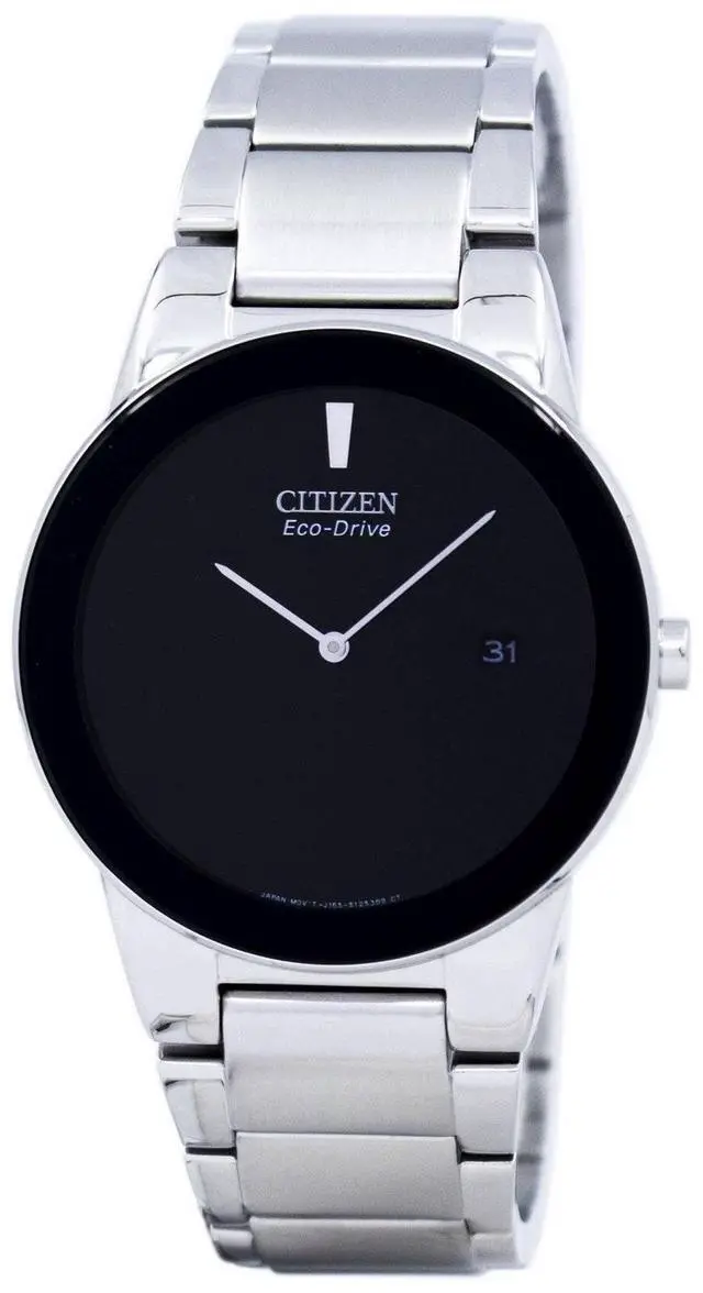 Retail Price: $ 225.00 Citizen Axiom Watch Collection. Stainless steel case and bracelet. Black dial. Date display.
