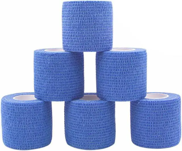 COMOmed Self Adherent Cohesive Bandage 2"x5 Yards First Aid Bandages Stretch Sport Athletic Wrap Vet Tape for Wrist Ankle Sprain and Swelling,Blue 6 Rolls