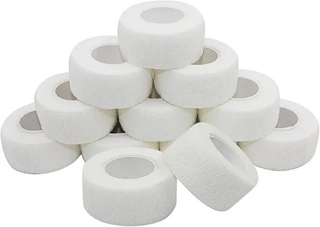 COMOmed Self Stick Cohesive Bandage Latex 1"x5 Yards First Aid Bandages Stretch Sport Wrap Vet Tape for Wrist Ankle Sprain and Swelling,White 12 Rolls
