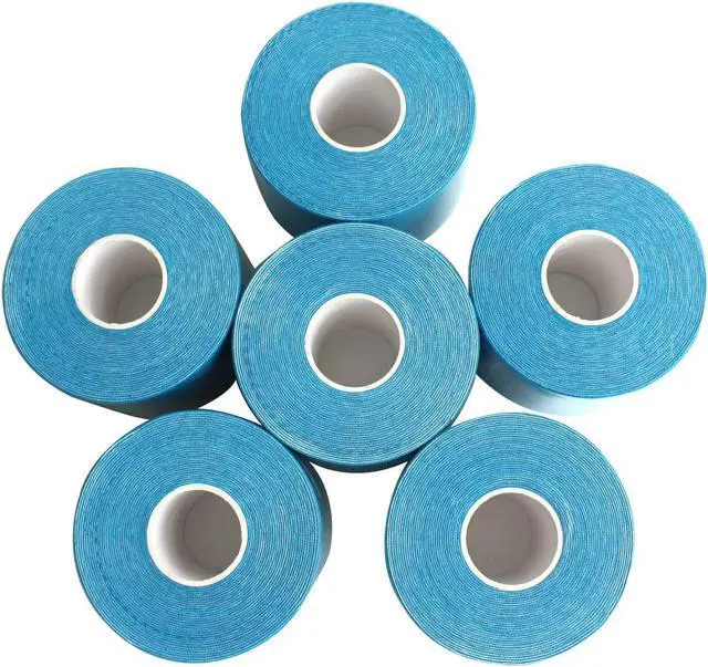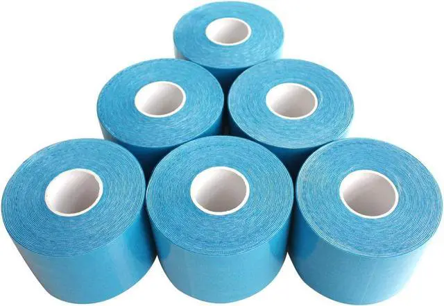 COMOmed Kinesiology Tape Water Resistant Uncut Sports Tape - 2 in x 16.5 ft - Professional Kinesiology Therapeutic Sports Tape,Blue,Latex Free 6 Rolls