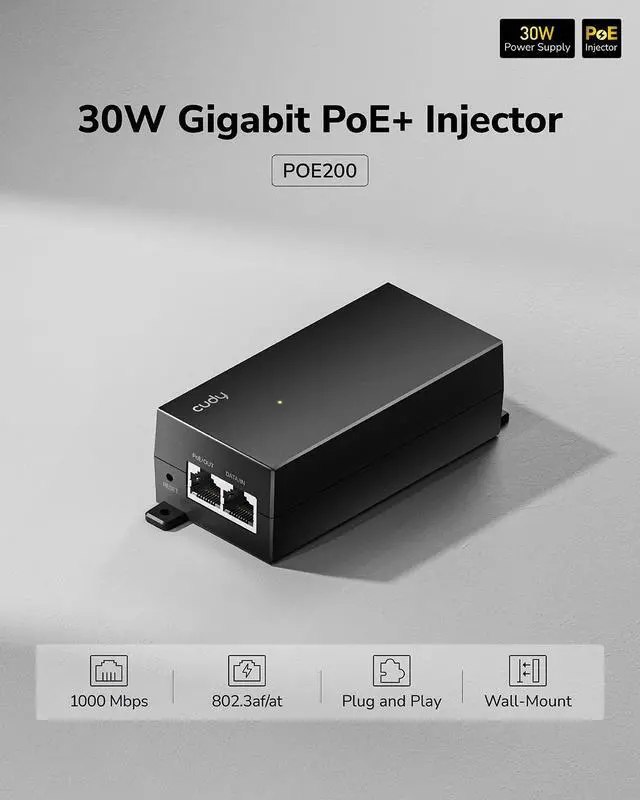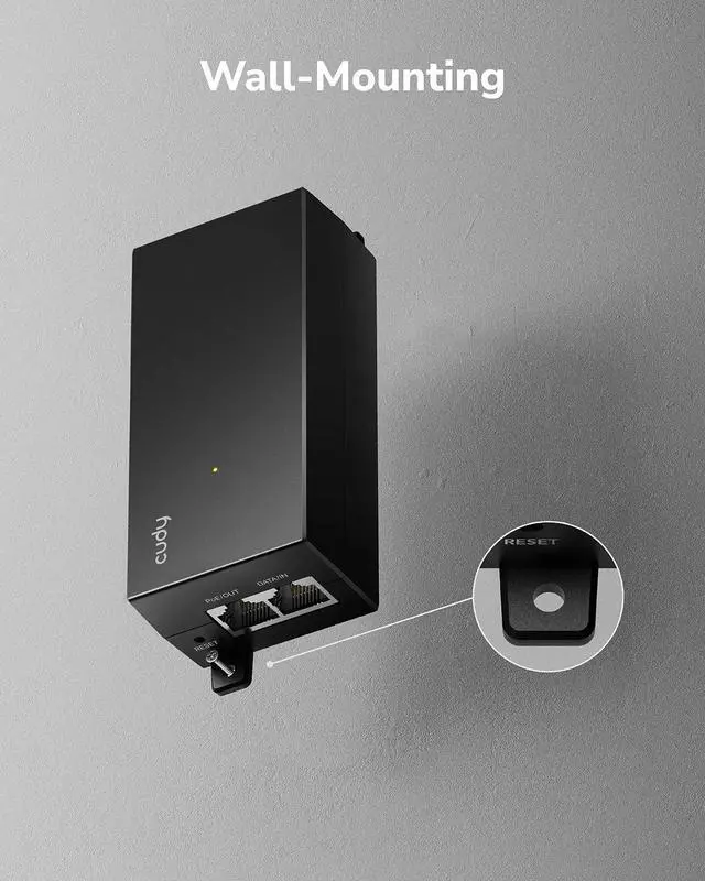 Provides up to 30W of power in standard 802.3at/af PoE protocol, suitable for powering access points, surveillance cameras, and other PoE clients.