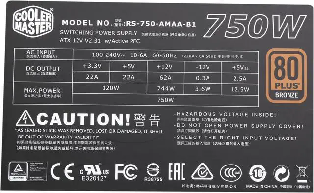 | Output | +3.3V@22A, +5V@22A, +12V@62A, [email protected], [email protected] |