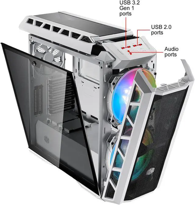 | Front Ports | 2 x USB 3.2 Gen 1 (formerly USB 3.0), 2 x USB 2.0, 1 x 3.5mm Audio Jack, 1 x 3.5mm Mic Jack, 1 x ARGB Controller, 1 x ARGB 2-to-3 Splitter |