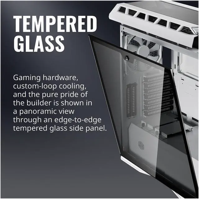 Show off your build through the edge-to-edge light grey-tinted tempered glass side panel.