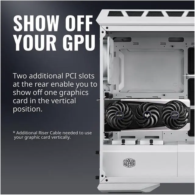 The MasterCase H500 Mesh White case is designed to house performance components in a clean and cool way. It performs to let you accomplish more and shines to make a unique statement. If you have a flashy graphics card, you can better show it off by installing it vertically.