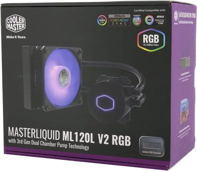 CoolerMaster has improved every aspect of the original MasterLiquid ML120L RGB liquid CPU cooler. Engineered with new generation pump, new SickleFlow 120 RGB fan, reinforced sealing and enlarged contact area, the all-new MasterLiquid ML120L V2 RGB runs even quieter with higher cooling performance on offer.