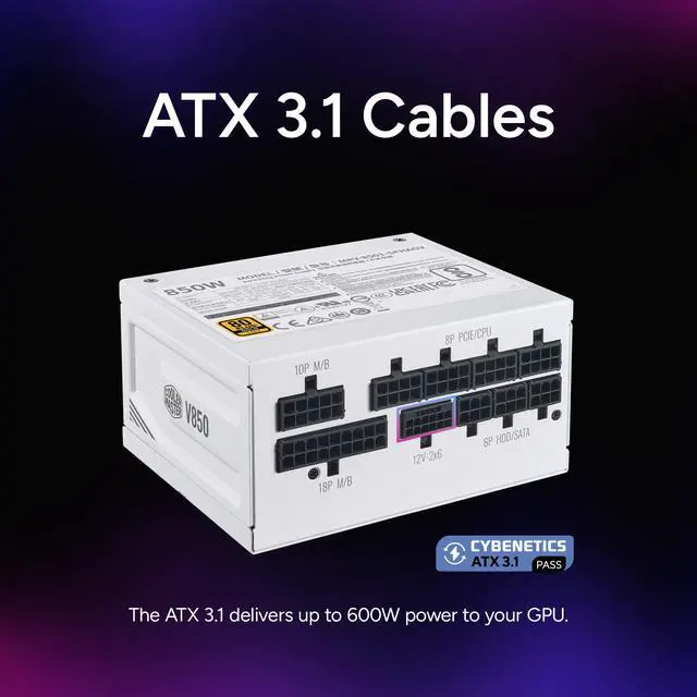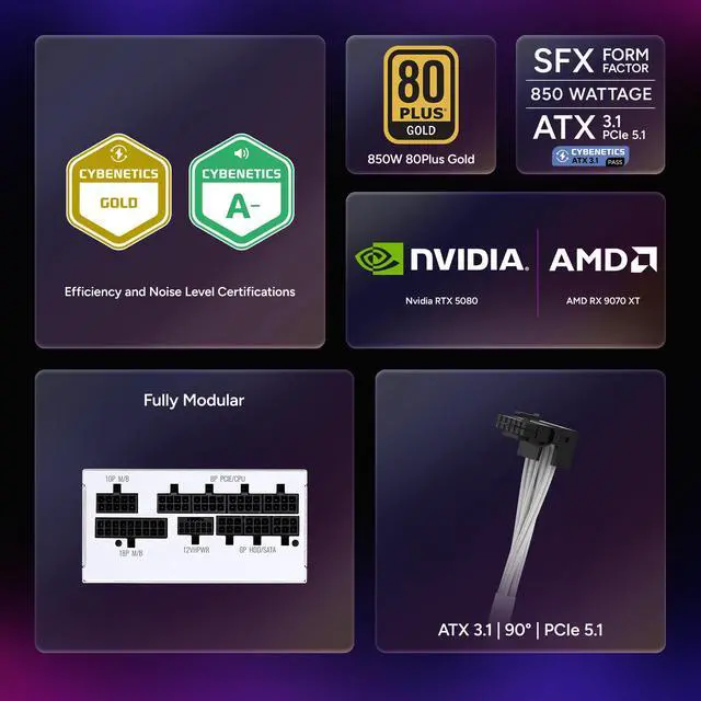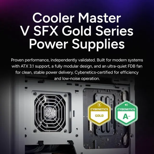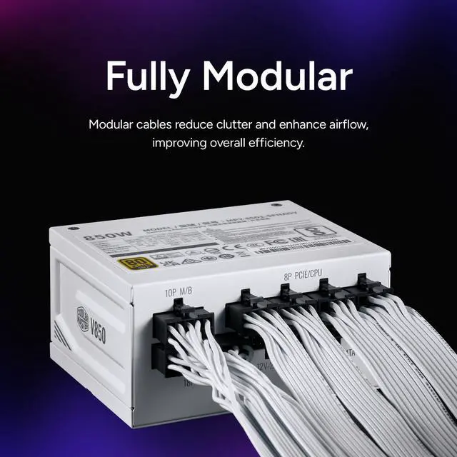 Cooler Master V850 SFX Gold 850W Fully Modular Power Supply - 80+ Gold Certified SFF PSU, ATX 3.1 & PCIe 5.1 Ready, 90 Degree Angled Cable, Low Noise, Small Form Factor ITX PSU, 10-Year Warranty,White