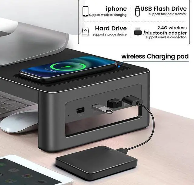 Multiple USB Ports:Equipped with 1xUSB3.0 port and 3xUSB2.0 ports,Vaydeer monitor riser maximizes the connectivity of your PC and type-c-only laptop.Connecting multiple devices at the same time is of no difficulty for Macbook or Matebook