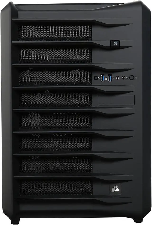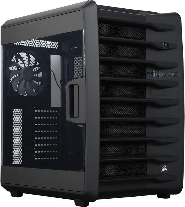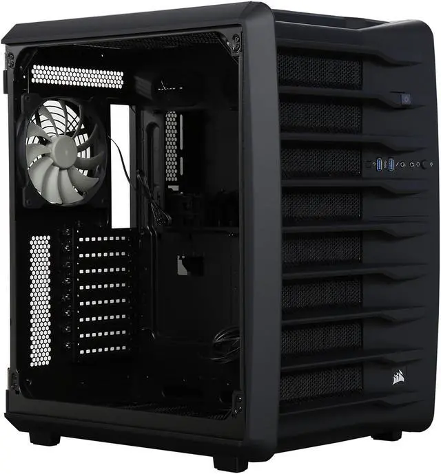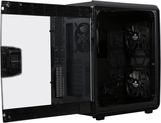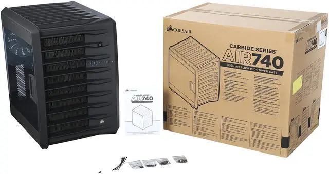 | Features | Bigger is Better CORSAIR Carbide Series PC cases have the high-end features you need, and nothing you don't. Designed to be the foundation of awesome, yet approachable PCs, they combine the latest case technologies and ergonomic innovations with amazing cooling potential, and plenty of room to build and expand. Room to Breathe The unique design of Carbide Series Air 740 utilizes dual chambers to deliver cooler air to your CPU, graphics cards, motherboard, and memory without your drives or power supply getting in the way. Cool it your way The included Air Series AF140L intake and exhaust fans deliver superior ventilation with less noise. The Air 740 features expansion room for advanced air cooling and water cooling setups. Industrial-style ergonomics and space-optimized internal design Offers massive internal volume by moving the power supply, SSD and optical drives into a separate chamber Expansion room For up to eight 120mm or seven 140mm fans, a 240mm or 280mm top radiator, and a 240mm, 280mm, or 360mm radiator on the front panel. |