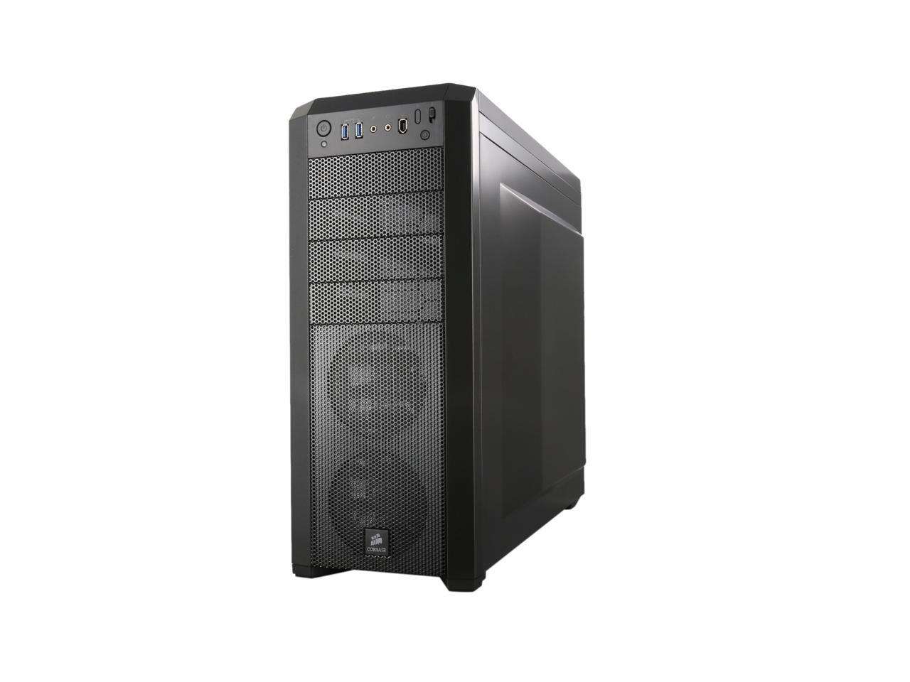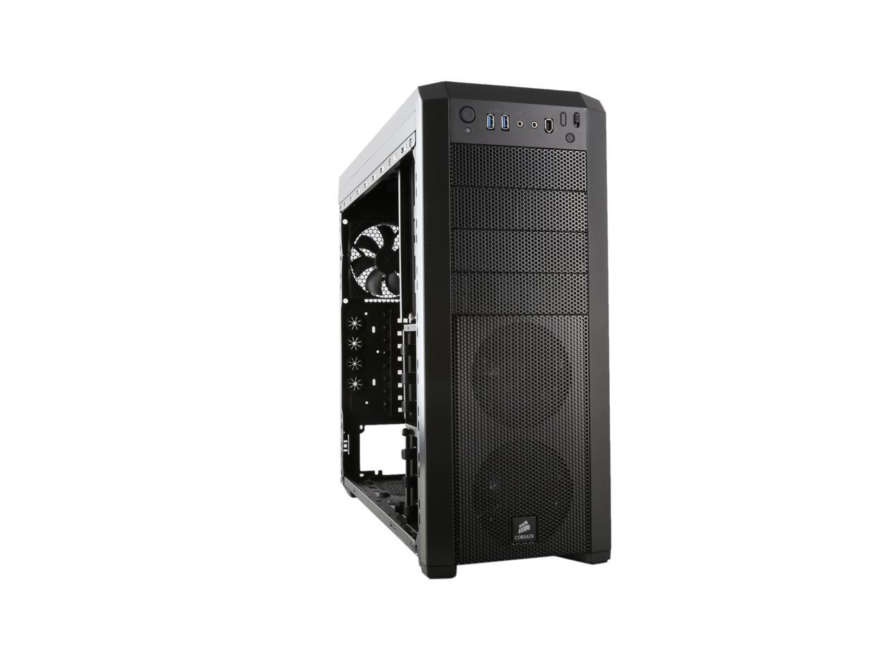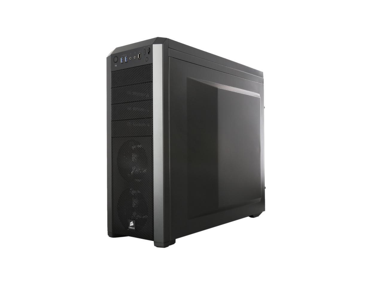 | Features | The Corsair Carbide Series: Built for Builders. The Carbide Series shares vital DNA with the award-winning Corsair Obsidian and Graphite Series. They’re acclaimed for their ease of use and performance-oriented engineering, and this philosophy is abundant in the design of the Carbide Series. Future-Ready. Support for USB 3.0 and 2.5” SSDs is built-in. Two USB 3.0 connectors are provided on the front panel and connect directly to motherboards with compatible USB 3.0 headers. Integrated SSD support lets you install 2.5” solid-state drives in any of the hard drive bays, without having to deal with adapters. Easy access. Thumb screws on the side panels and tool-free drive installation mean that you’ll spend less quality time with your screwdriver, and the integrated dust filters can be quickly removed for easy maintenance. Looking good, inside and out. The beauty on the inside goes beyond the black-painted interior. Corsair’s innovative cable management system provides a straightforward way to route cables behind the motherboard, not across it where it can interfere with airflow and give your system a cluttered look. And since looks are an important part of any build, you’ll appreciate the ability to turn the front panel fan white LEDs on or off with the push of a button. |