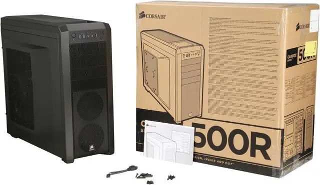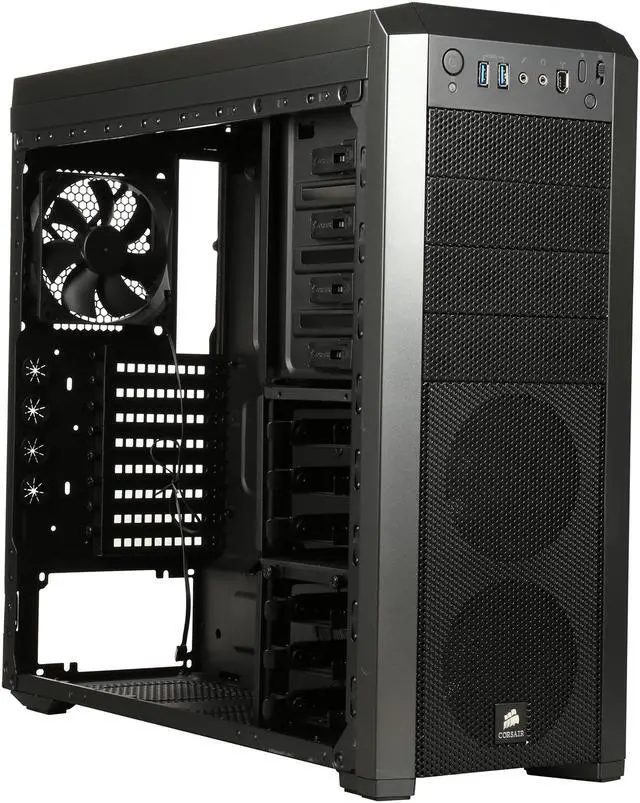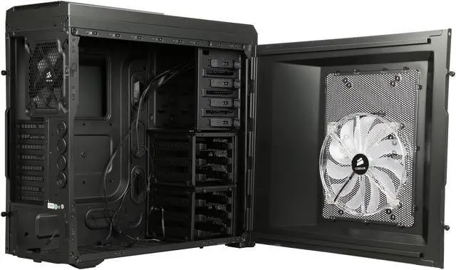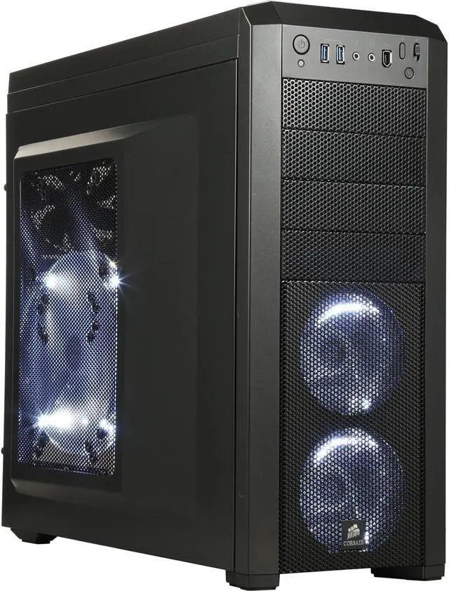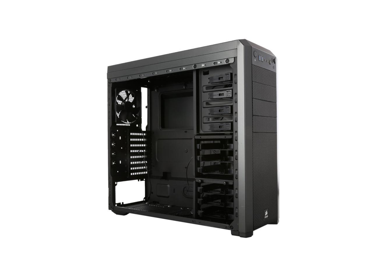 | Features | The Corsair Carbide Series: Built for Builders. The Carbide Series shares vital DNA with the award-winning Corsair Obsidian and Graphite Series. They’re acclaimed for their ease of use and performance-oriented engineering, and this philosophy is abundant in the design of the Carbide Series. Future-Ready. Support for USB 3.0 and 2.5” SSDs is built-in. Two USB 3.0 connectors are provided on the front panel and connect directly to motherboards with compatible USB 3.0 headers. Integrated SSD support lets you install 2.5” solid-state drives in any of the hard drive bays, without having to deal with adapters. Easy access. Thumb screws on the side panels and tool-free drive installation mean that you’ll spend less quality time with your screwdriver, and the integrated dust filters can be quickly removed for easy maintenance. Looking good, inside and out. The beauty on the inside goes beyond the black-painted interior. Corsair’s innovative cable management system provides a straightforward way to route cables behind the motherboard, not across it where it can interfere with airflow and give your system a cluttered look. And since looks are an important part of any build, you’ll appreciate the ability to turn the front panel fan white LEDs on or off with the push of a button. |