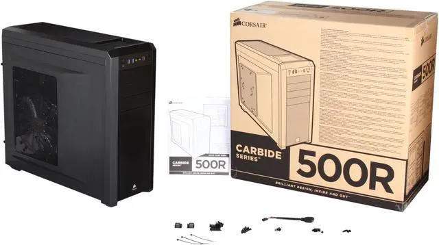 Corsair Carbide Series 500R Black Steel structure with molded ABS plastic accent pieces ATX Mid Tower Computer Case Compatible with ATX (not included) Power Supply