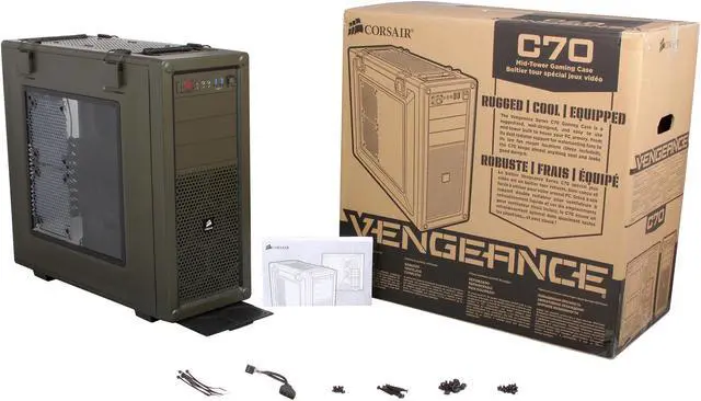 Corsair Vengeance C70 (CC-9011018-WW) Military Green Steel ATX Mid Tower Computer Case ATX (not included) Power Supply