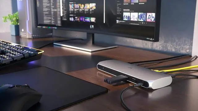 Includes 2x HDMI ports for dual displays at up to 4K 60Hz in HDR, as well as a combination 3.5mm in/out jack for your audio.
