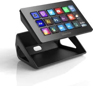 D15 Stream Controller, Production Console for Livestream Audio Video Design, 15 Custom Macro LCD Keys, 1 Side Info Screen Display, Trigger Actions in OBS Studio Streamlabs Twitch YouTube, Black