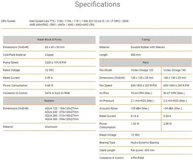 AQUA High-performance Cpu Liquid Cooler COUGAR’s AQUA is an all-in-one RGB liquid cooling series. It is a perfect solution for gamers who require powerful CPU cooling performance with astounding RGB visuals. Vibrant and Dazzling RGB LED Pump Head The AQUA Series’ Water Block packs together all the reliability and performance you expect from a high-end CPU cooler with a vibrant and dazzling RGB LED pump head to lights up your remarkable gaming builds. More than 100 RGB Effects with Driver-Free Remote Controller Customize your gaming styles by changing RGB effects. With the included wireless controller, you have access to more than 100 impressive RGB lighting effects.