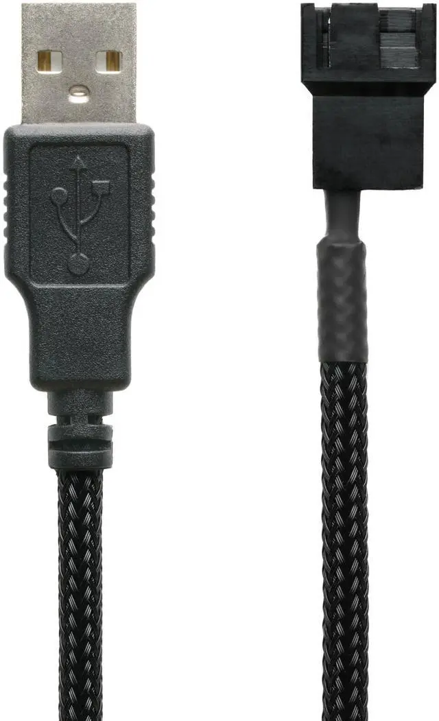 The first USB fan power adapter cable. Offering a convenient way of powering computer fans from any USB port to assist in the cooling of electronics devices. Encased in durable, high-density black nylon sleeving with sleek all-black connectors, the 24-inch cable ensures a professional and discreet setup. Its versatility extends beyond traditional PC use, making it ideal for enhancing cooling in TV or networking cabinets, consoles, AV receivers, and other electronic devices that benefit from improved airflow. This adapter cable provides a superior alternative to fixed USB fans by allowing users to select from a broader range of cooling solutions to meet their specific needs.