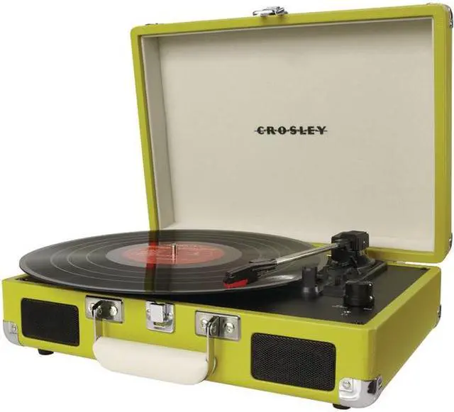 Love the rich, warm sound of vinyl, but wish it was a more moveable music format? Put down the iPod and mobilize your music with the Crosley Cruiser three-speed portable turntable. Constructed of wood and bound in a leatherette material, the briefcase-styled record player is lightweight and easily transported. Featuring built-in stereo speakers so you can listen to your music without having to connect it to a speaker system. Cruise over to a friend's house and experience vinyl's superior sound together.