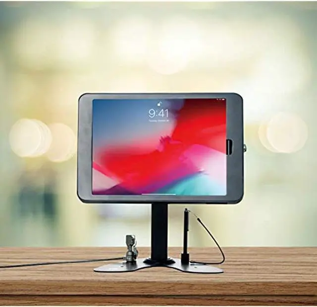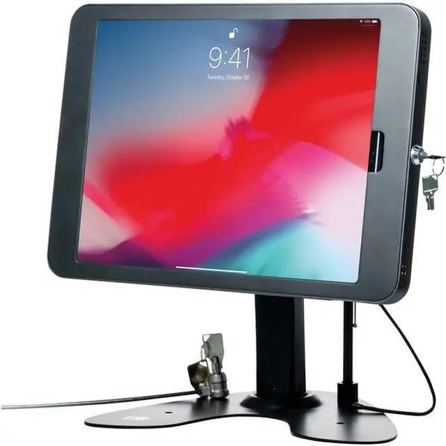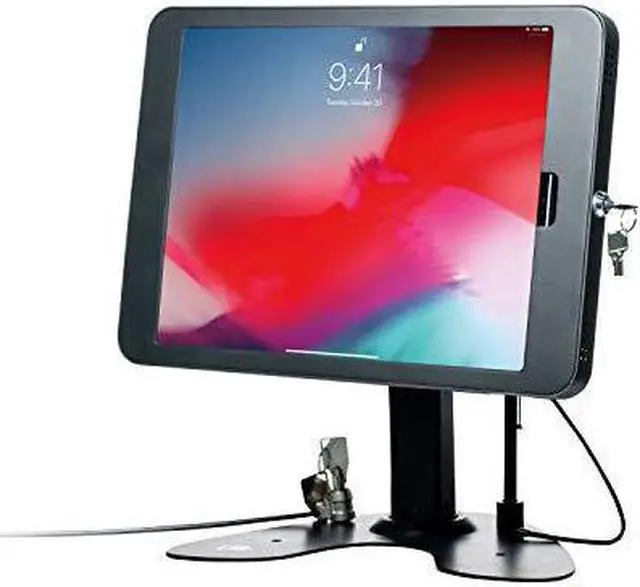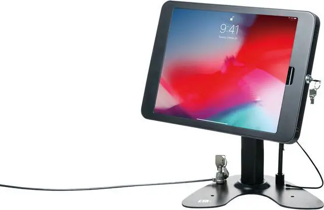 The CTA Digital PAD-ASK13B Dual Security Kiosk Stand for Apple iPad Pro gen 3 allows your iPad to be the protected centerpiece of a streamlined workstation, kiosk display, or retail point of sale. The base rotates 360deg for easy shifts between customer and register sides during a transaction, while the enclosure tilts for angle adjustment and also rotates for portrait and landscape orientations. The locking enclosure keeps your iPad protected from theft, unlocking with a set of included keys. For an optional added measure of theft protection, the steel security cable attaches to either the stand base or back of the case, attaching at the other end to any permanent fixture.