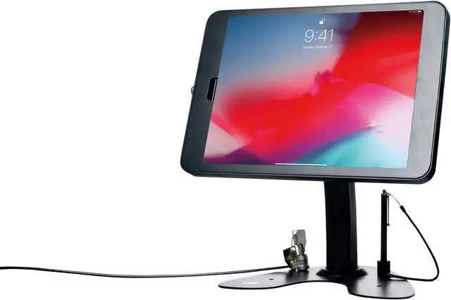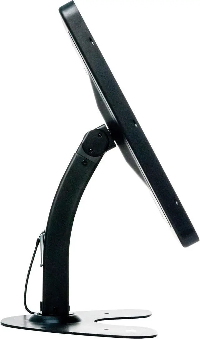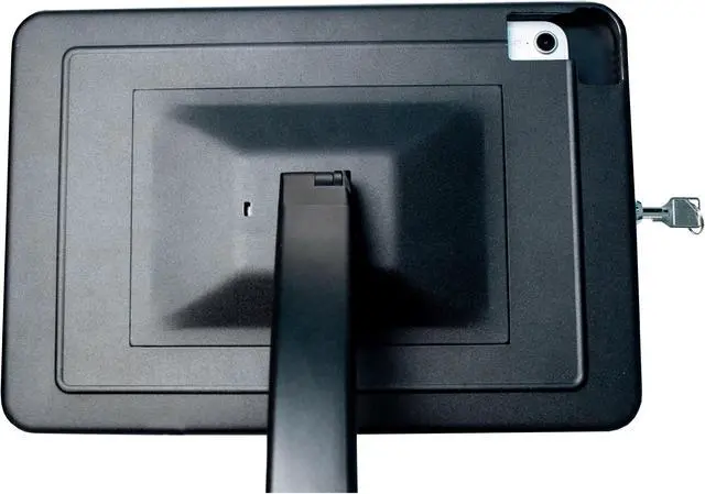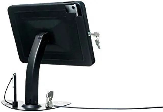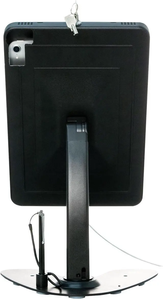 The enclosure allows full access to your tablet\'s ports, buttons, cameras, and headphone jack, for card reader compatibility. This kiosk features a clean cable management system, which prevents unwanted cable removal when in use.. Case tilts and rotates 360deg for portrait and landscape orientations. Rotating base for easy register- and customer-side transactions. Locking enclosure protects tablet from theft. Enclosure allows access to all ports, cameras, buttons, and headphone output. Stylus with elastic tether and built-in holder on base. Cable routing slots and slack management space within case prevent unwanted removal when in use.