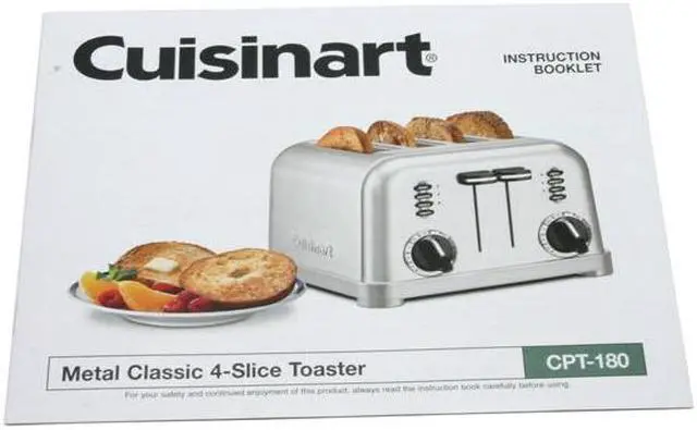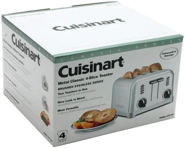 The Cuisinart CPT-180 is a four-slicer toaster, with 1½-inch slots that allow you to make tasty toast with speed and ease. Press one of the control buttons – bagels, reheat, defrost, or cancel – to get the results you want. Six browning levels let you customize the toast's color, from light brown to dark brown. When it's done, push down the extra-lift carriage lever and the toast pops out. Its smooth, brushed stainless housing with polished chrome and black accents makes it a stylish addition to your kitchen. Making delicious toast couldn't be easier!