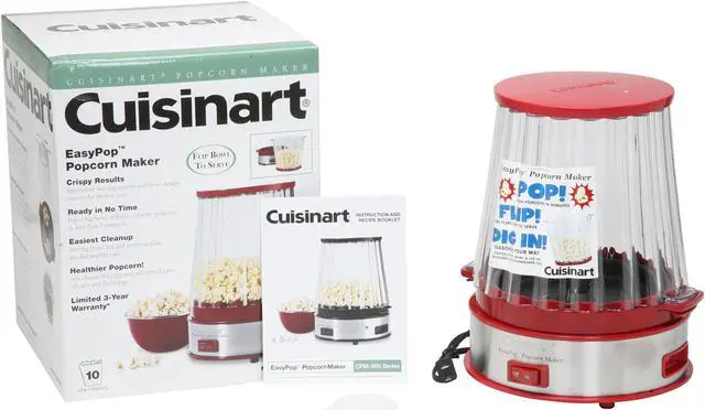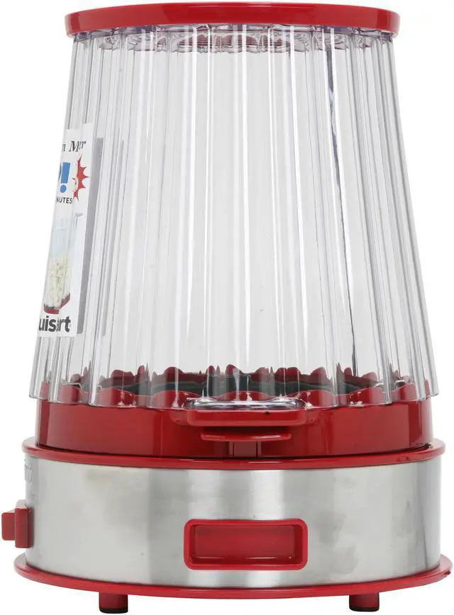 | Features | Elegant popping bowl with built-in ventilation and bowl cover Brushed stainless steel base with embossed logo Motorized stirring mechanism for better popping Aluminum in base of the popping plate ensures even heat distribution and unlimited popping cycles Popping complete in under 5 minutes Removable nonstick cooking plate with cool-touch handles Easy-to-clean parts; the bowl, bowl cover and popping plate are removable and dishwasher safe A healthy alternative to microwave popcorn |