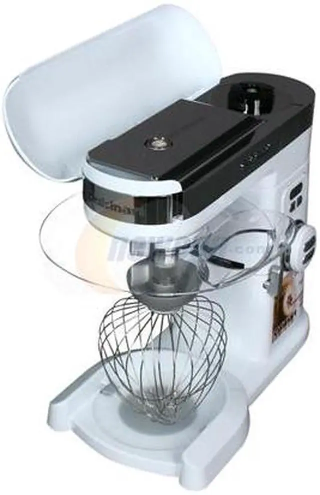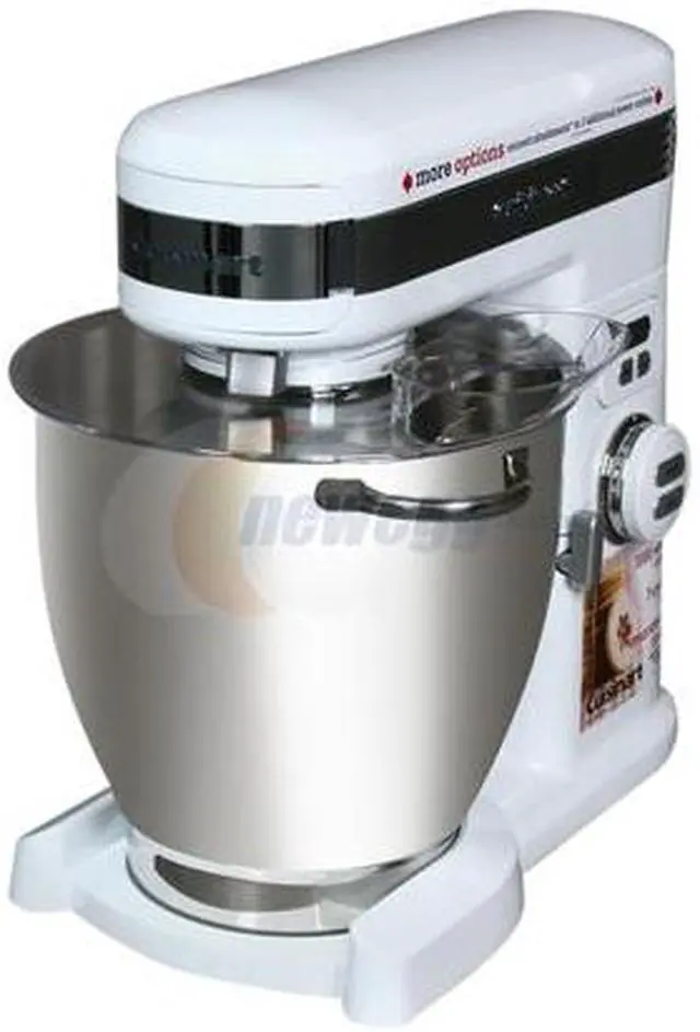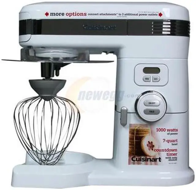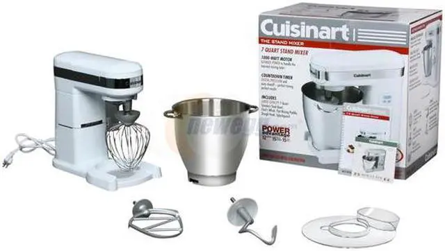 | Features | Tilt-back Head Top Cover 3 Power outlets 7 Quart Stainless Steel Bowl with Handles Head-lift Release Lever securely locks stand mixer head into raised tilt-back position On/Off, Fold and Speed Control Dial 12 speeds for precision mixing. 15-Minute Countdown Timer with Auto Shutoff Chef’s Whisk Flat Mixing Paddle Dough Hook Splashguard with Pour Spout |