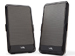 2 speaker system, with audio input cable. clamps magnetically for travel, includes pouch