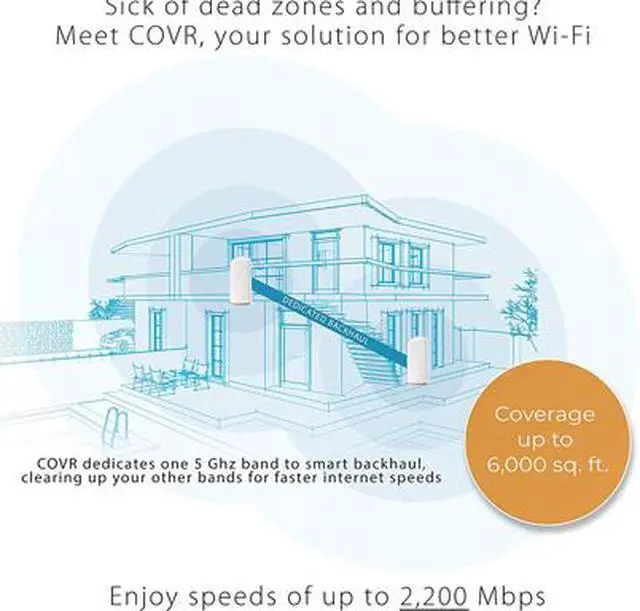 The Covr Tri Band Whole Home Wi-Fi System has a third separate band just for backhaul, leaving the other two bands unrestricted for connecting to your devices.