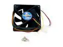 Cons: I find this fan's method of temperature control unnerving. It has its own idea how fast to run at certain temperatures, and that cannot be user-adjusted. This fan is powered via Molex connector with an extra dongle to report fan RPMs to the motherboard. I wish that dongle had been longer since the fan system fan header on the motherboard was as far from the I/O shield as was possible. The fan throttles its speed based on a thermocouple extending from the motor housing into the airflow on the exhaust side of the unit. This is not the fan to purchase if you are hoping to vary fan speed with utilities like SpeedFan.