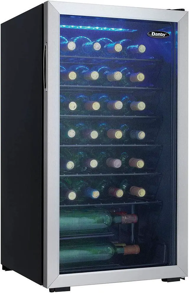 Theres no incandescent bulb to interfere with the chilling process and the glass door is designed to protect your collection from potentially harmful ultraviolet rays. This appliance features a stylish recessed pocket-style handle and reversible door swing to allow you to open it from the left or right-hand side. This sturdy wine cooler also comes with an 12-month warranty on parts and labour with in-home service.