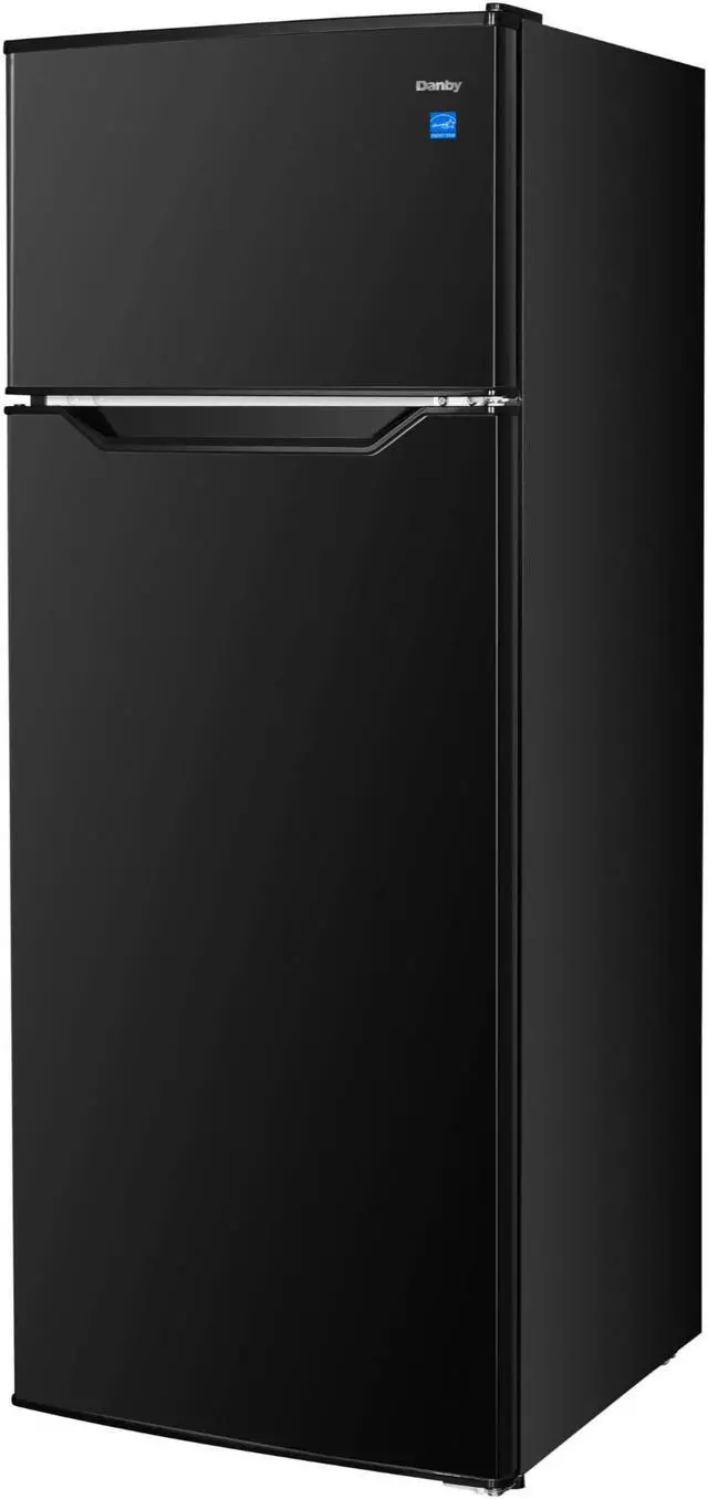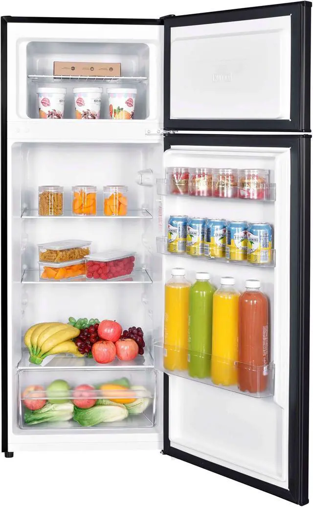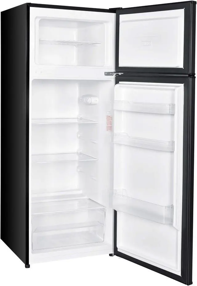 This 7.4 cu. ft. (206 Litre) mid-size refrigerator from Danby features two adjustable glass shelves in the fridge, and a top-mount freezer section with one adjustable wire shelf. It’s the perfect addition to any home, cottage, mini bar, or even the office! This model also comes with a transparent crisper bin to keep all your favorite vegetables and fruit fresh. Its reversible door hinge allows for a right- or left-hand swing so you can fit this unit in almost any space, while its three door shelves and tall bottle storage (2 litres or 1 gallon) make it easy to keep your fridge organized. Choose automatic defrost for the fridge and manual defrost for the freezer compartment for easy maintenance all year round. This Danby model is backed by a 12-month in-home warranty and comes in standard ISTA-6 packaging for added protection during transport.